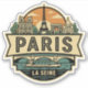 Celebrate the City of Light with this elegant vintage travel badge! The artwork features a retro-style emblem showcasing Paris's most romantic landmarks: the Gothic towers of Notre Dame, the majestic Eiffel Tower, the Arc de Triomphe, and the domes of Sacré-Cœur. Below the bold "PARIS" banner, a classic sightseeing boat glides along the River Seine under a scenic bridge. Rendered in a nostalgic palette of muted teal, rust, and cream, this design is the perfect souvenir for honeymooners, Francophiles, and dreamers.