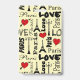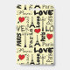 Paris text design for Valentine's Day with red heart shapes, Eiffel Tower and street lamps decoration on yellow background
