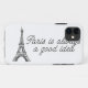 Black and white design illustrated by the famous eiffel tower and written on handwritten stylish font "Paris is always a good idea".