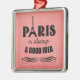 Paris is always a good idea text design illustration with flourish ornament decoration on pink grunge background
