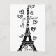 PARIS JE T'AIME EIFFEL TOWER AND HEARTS PRINT POSTCARD