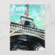 'Paris je t'aime' Retro Eiffel Tower Post Card in Teal