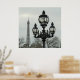 Paris Lamp Post and Eiffel Tower Scene in Winter Poster