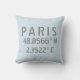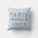 Latitude and longitude coordinates for Paris, France in grey modern urban stencil font.