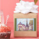 Paris Like Pointillism Landscape, Eiffel Tower sticker, with green and sky blue border, by Kristie Hubler, inspired by Paris, France, and Paris Las Vegas resort shop facades