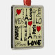 Paris text design for Valentine's Day with red heart shapes, Eiffel Tower and street lamps decoration on yellow background