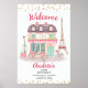 Paris Night Eiffel Bistro Pink Green Party Welcome Poster