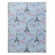 Seamless Paris text design illustration with Eiffel Tower, tricolor heart shapes and French flag decoration on blue background for Valentine's Day