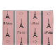 Paris illustration with Eiffel Tower and heart decoration and Paris text design on black, white and pink striped background