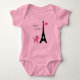 This is an adorable pink tutu bodysuit for baby girl, that is decorated with the fun quote, "Ooh la la", the Eiffel Tower, pink poodle and a little kiss, making it the cutest Paris inspired baby bodysuit.