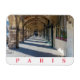 A beautiful view of the arcades at Place des Vosges in Paris in France printed on a souvenir fridge magnet.