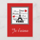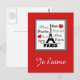 Paris text design illustration with Eiffel Tower and red hearts decoration in black and white squares on red background