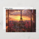 Postcard is shown with an Eiffel tower cityscape in Paris photo art print.