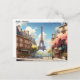 Postcard is shown with an Eiffel tower cityscape in Paris art print.