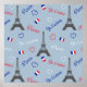 Seamless Paris text design illustration with Eiffel Tower, tricolor heart shapes and French flag decoration on blue background for Valentine's Day