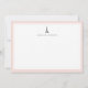 Our chic Parisian inspired personalised stationery flat cards feature a pastel blush pink border, a tiny black Eiffel tower illustration, and your name, monogram or choice of personalisation. Cards reverse to our Paris Romance pattern, with tiny birds, croissants, macarons, roses, coffee cups, and the Eiffel tower on a pale blush pink background.