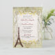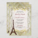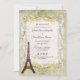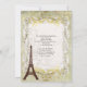 Beautiful and unique vintage inspired wedding invitation for a romantic marriage in Paris. Grunge effect vintage background with newsprint witha lace effect off-white border with pale grey images of flowers. Gold filligree baroque style swirls are at the top and bottom. The silhouette image of the world famous Parisian icon, the Eiffel Tower finishes off this elegant and unusual invite. Easily customisable so you can add your own details. Each invitation comes complete with an envelope. **IMPORTANT!