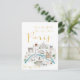Save the date and impress your guest with this beautifully illustrated handpainted Paris save the date postcard.