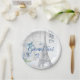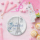 Delicate blue flowers on an drawings of Parisian architectural landmarks (Arch of Triumph and the Eiffel Tower).
