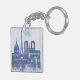 Paris Skyline - Watercolor Blue Key Ring