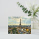 Aerial view of the Paris skyline with the Eiffel Tower. Watercolor style illustration.