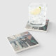 The coasters are gorgeous, a quality feel and heavy weight. They look like a precious archeological find. A rustic stone juxtaposed with a modern floral black and white print. I like the way the print goes slightly imperfect on the cut stone edges giving them a kind-of natural beauty.