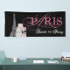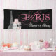 Paris sweet 16 birthday party banner with pretty pink Paris script on a pink and black gifts and high heel shoes and Eiffel Tower background. You can add the text of your choice and change the background colour.