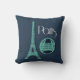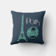 This art features a design of the Eiffel Tower in teal on a dark blue background.