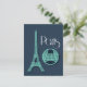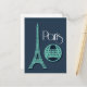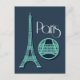 This art features a design of the Eiffel Tower in teal on a dark blue background.