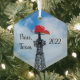 Unique glass ornament featuring the Eiffel Tower of Paris, Texas with the red cowboy hat.