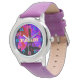 The watch looks exactly as depicted. I was especially pleased with the watch band, which is a nice quality, supple leather. I point this out because an option, which was sold out, was with a multi-colored but clearly plastic band. This is the better choice, in my view.
