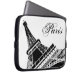 Customisable laptop sleeve with black and white illustration of the Eiffel Tower in Paris, France.