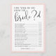 Chic bridal shower game card matches our Paris Romance bridal shower collection and features whimsical black script lettering and soft blush pink borders with Eiffel tower and tiny bird accents. Double sided card lets you get two games in one! Front features How Well Do You Know the Bride and reverses to What's in your Phone. Personalise with the bride to be's name and date of shower. "What's in Your Phone" questions are completely customisable using the template fields on the page. For additional customisation, feel free to contact me!