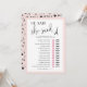 Chic bridal shower game card matches our Paris Romance bridal shower collection and features whimsical black script lettering and soft blush pink borders with Eiffel tower, kiss print and moustache accents. Custom He Said, She Said game card lets you personalise all 14 questions for a fun bridal shower activity that reflects the bride and groom's interests, habits and relationship!