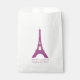Chic white favour bag with graphics of a pink glittery Eiffel Tower. Personalise the pink custom text for your daughter's Sweet 16 party. Great for candy and sweets bars.
