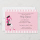 Paris Themed Birthday Invitation with a woman tasting wine. There are pink stripe backgrounds on the front and back and also a graphic of the Eiffel Tower. clipart by Prettygrafik