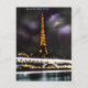 A striking vintage image of the Eiffel Tower at night, in vibrant colour, from a beautiful and mysterious old postcard.