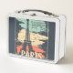 This is a standard metal lunchbox that appears to work just fine. We designed this box ourselves with an uploaded photo and custom text on the front and back. It looks absolutely beautiful except the front of the lunchbox is not centered like it shows in the photo. The print borders don't align with the inset flat part of the box where the preview photo online showed it perfectly centered in there. The back looks nice and centered though.