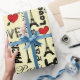 Paris text design for Valentine's Day with red heart shapes, Eiffel Tower and street lamps decoration on yellow background