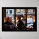 Candid Photography - Café parisien, rue Rambuteau near Beaubourg - 2008 - Girls in motion at a table. Passerby with umbrella on the other side of the glass - Blur effect. Poster.com