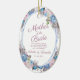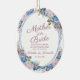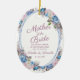 Parisian Charm Blue & Pink Floral Chic and Shabby Design with Painted Roses, Leaves, and Flowers. A Charming and Playful Look, with Blush Pink, Dusty Blue, Mauve, Dark Navy Violet colour palette. With Hand Painted Watercolor Floral elements, Vintage Classic Script Fonts and Oval Frame - Mother of the Bride Heartfelt Quote Keepsake Ornament!