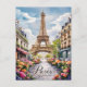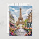 A watercolor painting depicting a picturesque scene in Paris, featuring the Eiffel Tower in the background, a cobblestone street lined with colourful flowers, and charming Parisian buildings. The painting captures the romantic and enchanting atmosphere of the City of Lights.