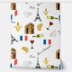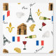 Icons of the Parisian life; Eiffel Tower, Arc de Triomphe, flag of France and of course coffee, croissants and wine.