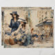 Parisienne Streets Junk Journal Page. With different artwork on each side, depicting Paris lifestyle, with flower market and cafe scenes. With a vintage feel. For your junk journalling and scrapbooking projects.