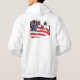 Park City with a skier on the front pocket and skier on the back skiing over the American Flag.