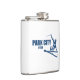 The flask itself is fine. It’s a cheap flask, obviously bought in bulk, however am prepared to overlook that. Given that it is a personalized item, I would have liked to have seen gift boxing instead of the generic packaging. Terrible printing, and/or quality. It’s a cheap, tacky vinyl. It is not cut straight and is also applied in a way that it is overhanging the bottom, causing the glue to catch on items and it will eventually roll and tear, damaging the wrap.