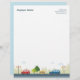 A fun letterhead that has parked cars in the footer on a street with trees, streetlights and a park bench. This would be a good fit for mechanic shops, paid parking lots, street parking, national and provincial parks and anything to do with city streets and vehicles.