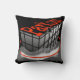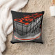 Parkour throw pillow has a fully customisable, two-sided parkour design with graphic art that shows two traceurs or freerunners reaching the top of a building in black lines, red text and grey clouds. One side has black background, the other a white background. Personalise it by changing background colours or images; change or add your own text.