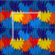 Colourful fabric patterned with Scarlet Macaw feathers.