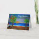 Parrot head Christmas Holiday cards from my art. Tropical Santa parrots in the sunset with Christmas palm trees on the ocean setting. Original art designs from my paintings.